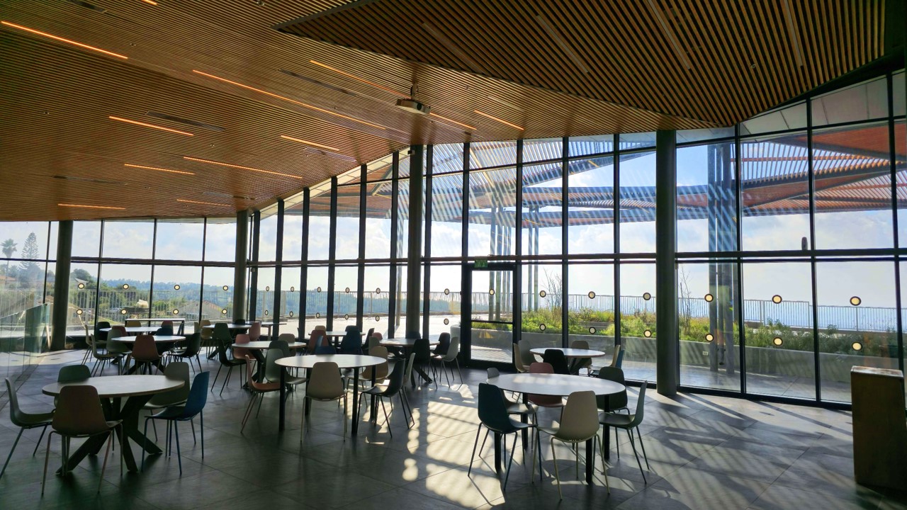 Another important aspect to the design was to create a building that is community oriented. Therefore, there were many spaces, interior and exterior, that create varies meeting locations and different interactions between the users. The observation deck overlooking the Mediterranean Sea, located on the roof of the auditorium, is designed for formal and informal leisure activities and facilitates the building for social meeting. In addition, the building as a whole is designed in a way that it connects the people within. The Atrium connects the upper entrance area with the auditorium entrance and connects between the different functions of the building. The movement between the various activities in the atrium creates a variety of opportunities for meeting other people.