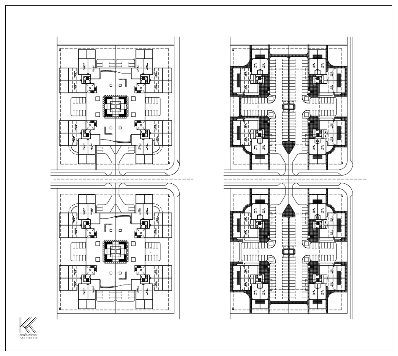 A wide park is planned in the centre of the neighborhood which will create an urban meeting place for local residents. The proposed development offers a variety of residential models: typical residential high-rise building and ground floor houses, around a semi-public space for the benefit of the building residents.