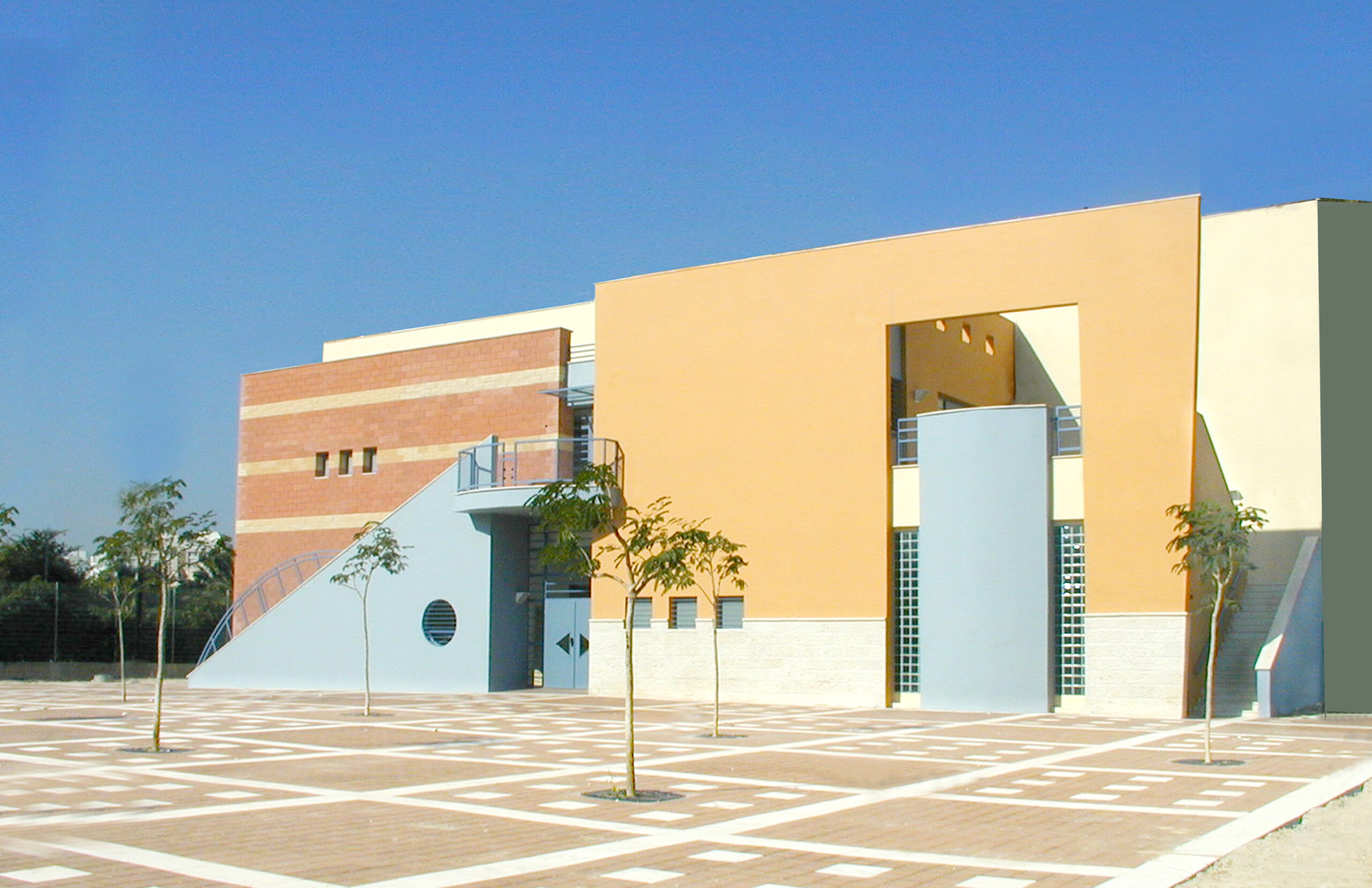 The sport center demonstrates an attempt to challenge its typical massive, closed and introvert appearance, by breaking down its volume characteristics into two-dimensional screens and creating a dynamic composition of an architectural event on a public plaza. Furthermore, the sports hall is situated in a Mediterranean coastal town, the sport hall doesn’t shy away from confronting the bright light, the warm materials and rich colors abundant in the region. By posing the screen facades and using vivid colors against the light, a rich composition of shadows breaks the mass, making it lighter and more inviting.