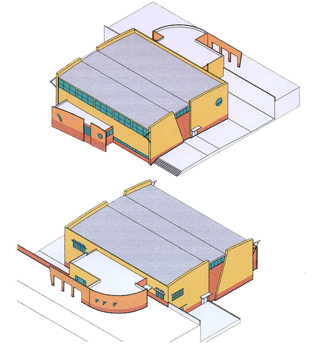 A sport hall is usually a huge anonymous volume dominating its surroundings. This project represents an attempt to re-design the form of the sports hall, and to suggest a new architecture: a composition of fragmented forms that reflects the function of the building, its characteristics and its purpose.