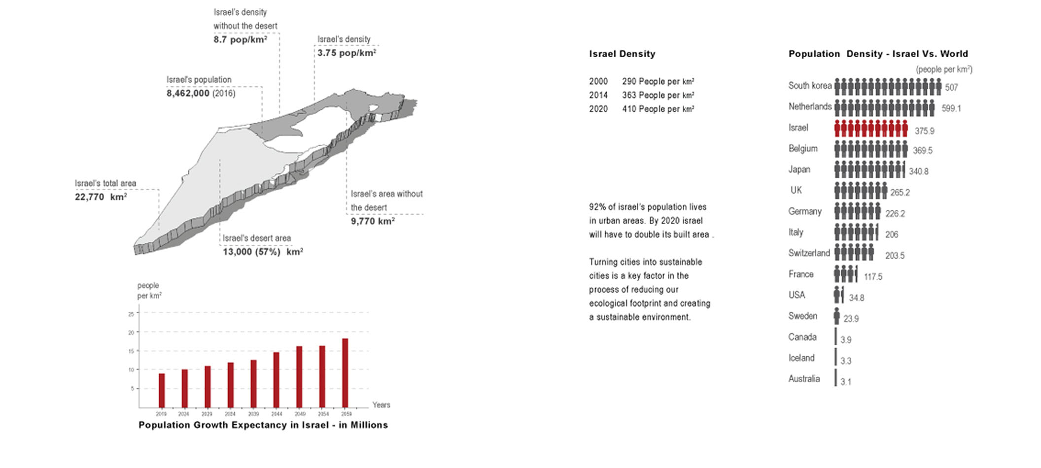 One of the greatest threats to this balance has to do with overpopulation, a point echoed by Malthus[1], who claimed that when population growth outgrows its resources, we reach a `Point of Crisis`. If we associate this theory with Israel’s urban population (92%), it becomes necessary to think of ways of maintaining balance within our urban ecosystem in order to prevent the `point of collapse`. Perceiving the city as a living organism requires that we look to nature for inspiration, and develop a mechanism that can mimic nature’s dynamic means of maintaining balance and resiliency.